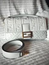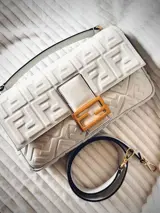 Iconische grote baguettetas in perfecte staat, gemaakt van zacht wit nappaleer met een driedimensionaal gestructureerd FF-motief. Versierd met FF sluiting.