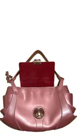 La borsa è all'esterno in felle kleur oro rosa lucido met inseriti metallici dorati en all'interno in pelle scamosciata rossa. La pelle esterna è tenuta bene con pochi segni di uso en qualche piccolo difetto di colore. All'interno è presente qualche macchia chiara rimovibile con un lavaggio delicato. De kans is groot dat de eigenaar van de zaak een grote kans van slagen heeft, kom als je snel een foto ziet. La chiusura a scatto è perfettamente funzionante.