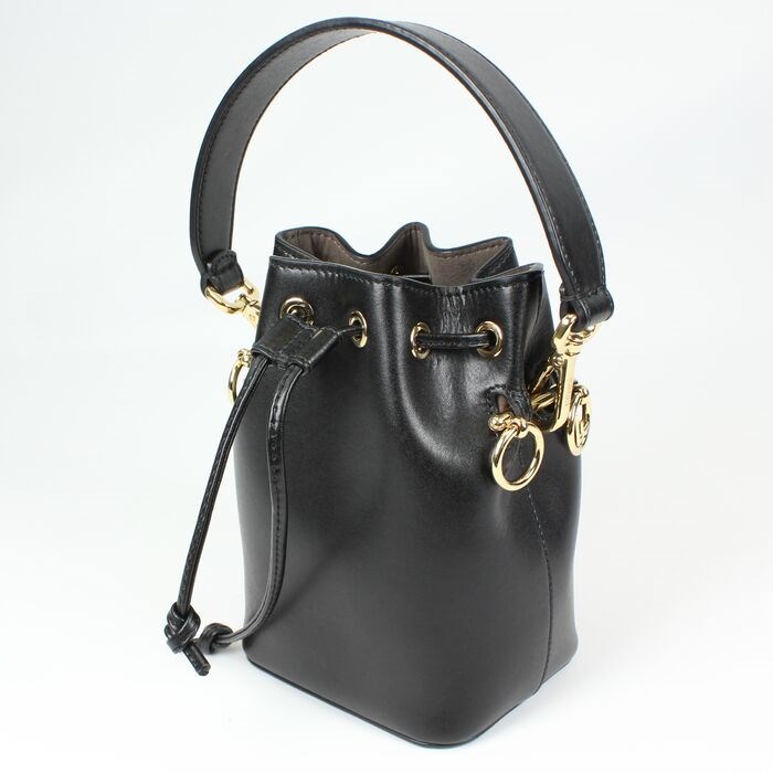 Dit is een authentieke FENDI Mini Mon Tresor-tas van kalfsleer. Deze chique tas is gemaakt van zwart kalfsleer. De tas heeft een gouden balk aan de zijkanten met aan elk uiteinde een cirkel met een F-logo. De tas opent met een trekkoord naar en open bovenkant met een interieur van taupe stof met ruimte voor dagelijkse benodigdheden. Deze mini crossbody is ideaal voor elke gelegenheid met de trendy unieke stijl van Fendi.