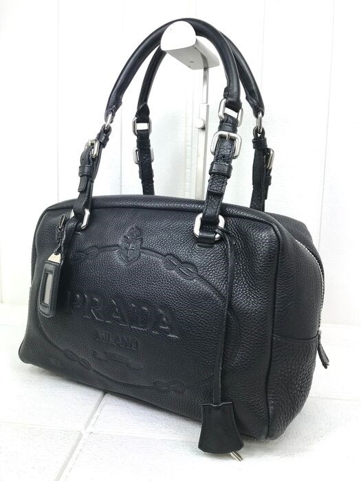 PRADA - schoudertas - zwart gekleurd leer - afmetingen ca. 22 x 29 x 14 cm - zilverkleurige hardware - goudkleurige zaksluiting ritssluiting schuifring, deze is vervangen volgens de bijgevoegde foto, Prada-schrift - ritssluiting - perfect ontsmet voor levering - onmiddellijke verzekerde verzending.