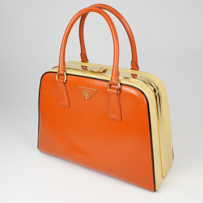De Prada Saffiano Vernice Frame Top Bag is een verfijnd stuk. Deze duurzame en ruime tas heeft de mogelijkheid om al je dagelijkse benodigdheden en meer op te bergen. Het is gemaakt van prachtig tweekleurig Saffiano-lakleer en heeft twee opgerolde handgrepen en een frame met veerscharniersluiting. De binnenkant is gevoerd met glad leer en heeft twee grote ritsvakken en drie platte vakken! Een leren driehoekig Prada-logo maakt de look compleet. We houden van de gestructureerde vorm van deze tijdloze klassieker.