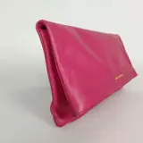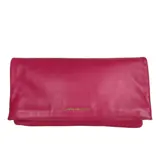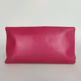 Handtas van fuchsia leer met gouden metalen inzetstukken.