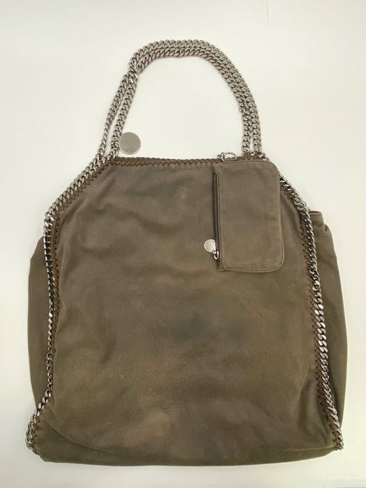Stella McCartney Falabella grote draagtas met twee kettingen en uitneembare binnenzak. Bruine kleur. Zilveren hardware.