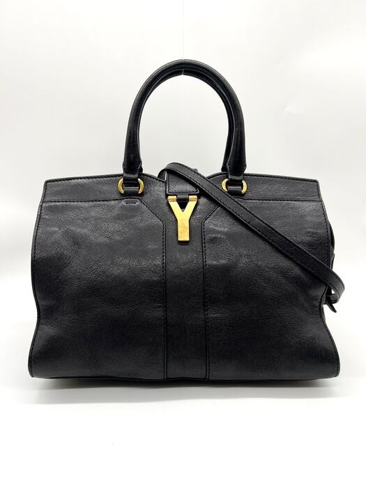 Mooie Yves Saint Laurent Y ligne handtas en schoudertas in zwart leer en verguld metaal