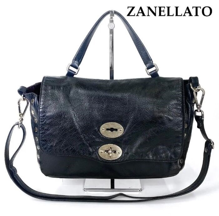 ZANELLATO zwart leren 2-weg draaislot voor tas, zilverkleurige metalen onderdelen.
