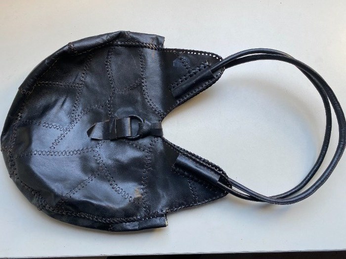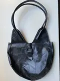 Zwarte handtas Materiaal:leerAfmetigen BxH, 36cmx43cmafm. met hengels =63cmBinnenin :1 ritsvak Verzendkosten voor de koper €8,25