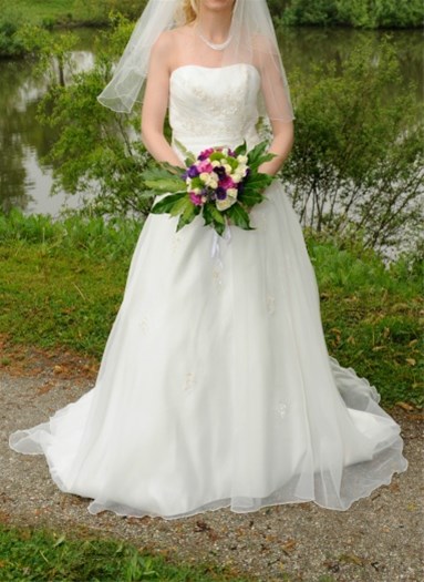 Na de trouwerij is de jurk netjes gestoomd, dus geen geurtjes en/of viezigheid.