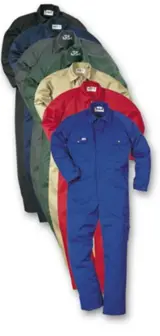 Brandvertragend, rally-overall of industrial-overall met druk of gewone knopen.