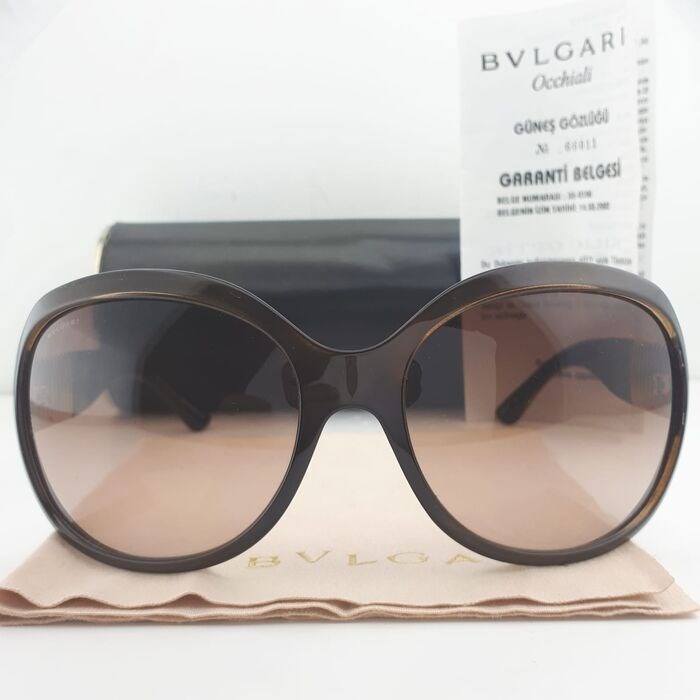 Extra's: Bvlgari-zonnebrillenkoker, Bvlgari-zonnebrilpoetsdoekje en echtheidsboekje (garantieboekje: het bevat verkoopdatum, modelnummer, verkooppunt, stempel enz.)
