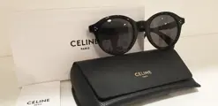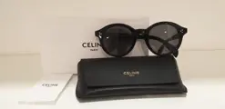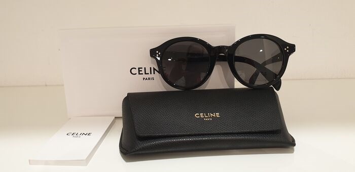 De Celine CL40034F zonnebril in het zwart heeft het klassieke dikke montuur dat het merk Celine kenmerkt in combinatie met effen grijze glazen. Aan de zijkant en op de pootjes de details: zilver metalen inlegbouten