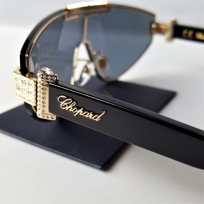 Hoge kwaliteit lenzen met het Chopard logo. De absolute top van luxe, met exclusieve tempels, bevestigd met kristallen.