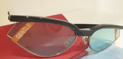 Fendi 0369/S zonnebril in grijze kleur met een kleine cat eye-vorm, gemaakt in samenwerking met Gentle Monster.De geometrische lijnen en de oranje plaquette met contrasterende Fendi-letters op de lens definiëren een eigentijds en impactvol silhouet. een mix van materialen, met de bovenste boog in blauw acetaat en onderste rand in zilverkleurig metaal. De pootjes zijn gepersonaliseerd met het Gentle Monster-logo en de handtekening van de samenwerking in laser aan de binnenkant gedrukt. Verstelbare neuspads. Beperkte oplage