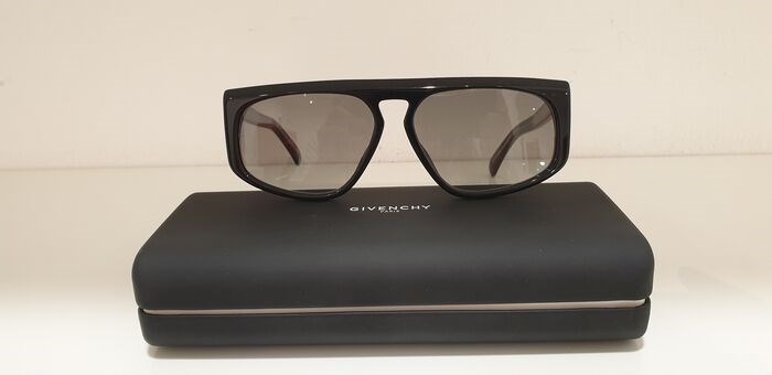 Zonnebril met een essentiële lijn deze Givenchy Gv7125/s in zwart acetaat met verenigde rookgrijze lenzen.