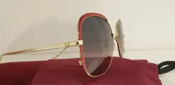 Zonnebril Gucci 0400S Seasonal Icon kleur goud multic.Oversized vierkante vorm verfraaid met guilloché-afwerkingen geïnspireerd door de wereld van accessoires.Ultra-gouden metaaleffect in contrast met de tinten van gekleurd email en de kleurverloop van de lenzen.klein in elkaar grijpend GG-logo.