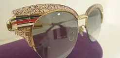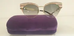 De op de Clubmaster geïnspireerde Gucci GG0283/S zonnebril is verfraaid met glitterend transparant acetaat en een blauwe, rode, witte metalen band die doet denken aan de kleuren van het huis en zich uitstrekt tot de pootjes zelf.De lenzen die het juiste contrast creëren voor een chique uitstraling.