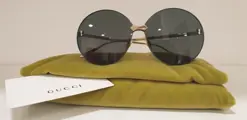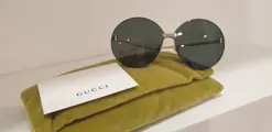 Gucci GG0353S gouden zonnebril met grijze lenzen vrij van het frame.Geïnspireerd door de jaren 2000, de lijn is schoon en eenvoudig, alleen op de goudkleurige metalen pootjes vinden we het merk Gucci terug