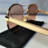 De zonnebrillen zijn gemaakt in Italië en gemaakt van zeer hoogwaardig materiaal. 18K verguld metalen frame. Van het bekende designermerk, gevestigd in London, UK.