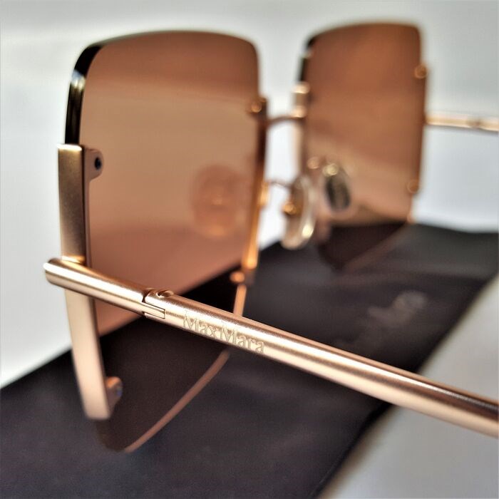Het kenmerkende Max Mara-merk weergegeven langs de slapen en op de lenzen.