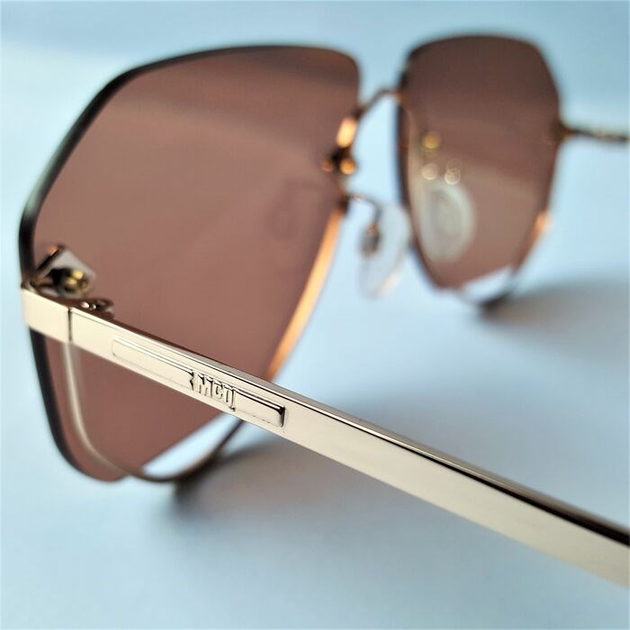 Uniek ontwerp in deze speciale editie. 18K goud vergulde lijst, die deels open is. Een unieke zonnebril.