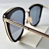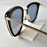 Uniek gekarteld ontwerp met een aviator 18K verguld metalen frame. Speciale patroonlijnen rond de voorkant van het frame.