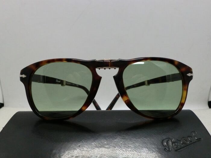 Persol 714 24 3P opvouwbare zonnebrillen zijn een wonder van moderne techniek, opvouwbaar tot een formaat dat niet veel groter is dan een enkele lens en hier in de moeilijk te vinden, stopgezette 714 24 3P-variant met een rijk donker schildpadframe. Naast de engineering van het vouwsysteem, krijg je ook het beroemde Persol Meflecto-systeem, waarbij kleine cilinders in de acetaatarm worden gestoken om deze een ongekende flexibiliteit te geven, een ambachtelijk productieproces dat exclusief is voor Persol-zonnebrillen. Hier in de 714 24 zie je dat je de 2 Meflecto-inzetstukken kunt zien als verticale banden in de oorstelen van deze Persol 704 24 zonnebril. " x 1.75". Je vindt de iconische Persol-geëtste pijlscharnieren aan de slapen van beide oorstelen, en de binnenkant van één steel is gemarkeerd als Persol Made in Italy L CE terwijl de binnenkant van de andere steel is gemarkeerd met 714 24/57 52 [] 21 140 3P en beide oorkussens zijn onder de indruk Persol.