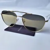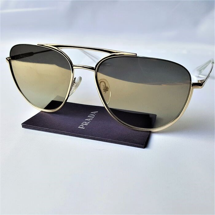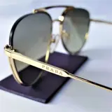 Prada-signatuur weergegeven langs de slapen en op de lenzen.