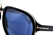 Dit Geoffrey-model kan worden omschreven als een zeer elegant en eenvoudig ontwerp in pilotenstijl, dankzij een perfecte combinatie van matzwart acetaat met verguld metaal op het montuur. Het heeft ook T-vormige elementen op de pootjes en de naam Tom Ford aan het uiteinde van de pootjes, vergezeld van uitzonderlijke blauwe glazen, waardoor deze zonnebril een van de meest populaire en elegante modellen van het merk Tom Ford is.