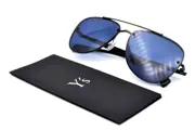 Dit model heeft een zeer elegant aviator-design, dankzij een perfecte combinatie van gepolijst acetaat en metaal in het montuur waar voor alle details is gezorgd, vergezeld van uitzonderlijke blauwe glazen, die deze zonnebril tot een elegant en exclusief model maken. .
