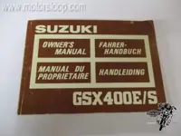 Suzuki GSX400E / S Owner's Manuel Codes: 99011-44425-01U Specs: Gebruikt Model: OWNERSM0005 1 Voorraad Fabrikant: Suzuki