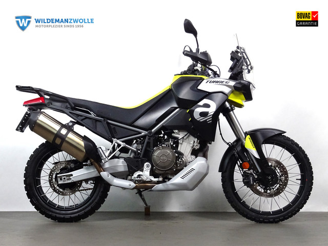 Aprilia Tuareg 660 uit 2023, in uitstekende staat met 10.000 kilometer op de teller. Deze allroad combineert de sportieve prestaties van Aprilia met uitstekend comfort en terreinvaardigheid. Belangrijkste kenmerken:, 659cc parallel-twin motorblok (80 pk), 4 rijmodi, inclusief Off-Road, Volledig verstelbare vering, TFT-kleurendisplay, ABS uitschakelbaar, cruise control. De motor is goed onderhouden, schadevrij en klaar voor vele zorgeloze kilometers — zowel op als naast het asfalt. Kan op kenteken zowel op 35kW als op vol vermogen 58kW.