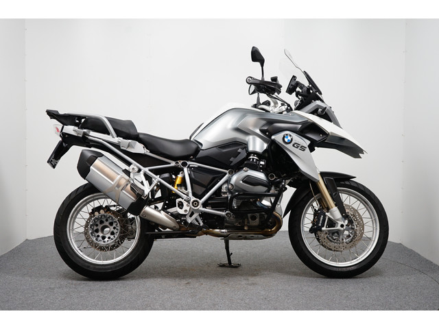 Een in nette staat verkerende BMW R 1200 GS ABS met Cruise Controle, ESA, Handvatverwarming, Valbeugels, Handkappen en middenbok.
