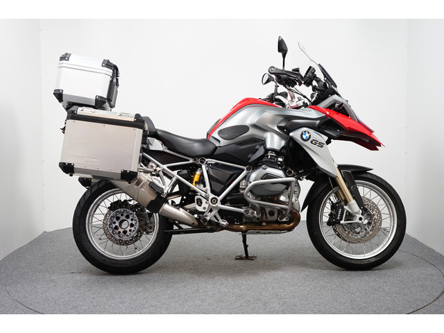 Mooie en complete R1200GS met 3 delige kofferset, valbeugels, handkappen, handvatverwarming, cruise control, navigatie houder, ESA (elketronische vering), rijmodi, zijstandaard verbreder, middenbok, extra gereedschap bakje naarst zijkoffer en bredere voetsteunen.