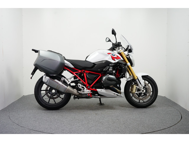 Een in prachtstaat verkerende BMW R 1200 R ABS met TCS, ESA, Cruise Control, Windscherm, Kofferset, Topkoffer drager, Led knipperlichten, Navigatie voorbereiding, Trip info, Rij-modi Pro, Keyless Ride, Bandenspanning controle systeem en handvatverwarming.