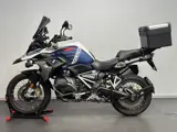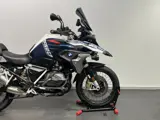BMW R 1250 GS stijlvariant trophy voorzien van valbeugels en een topkoffer.