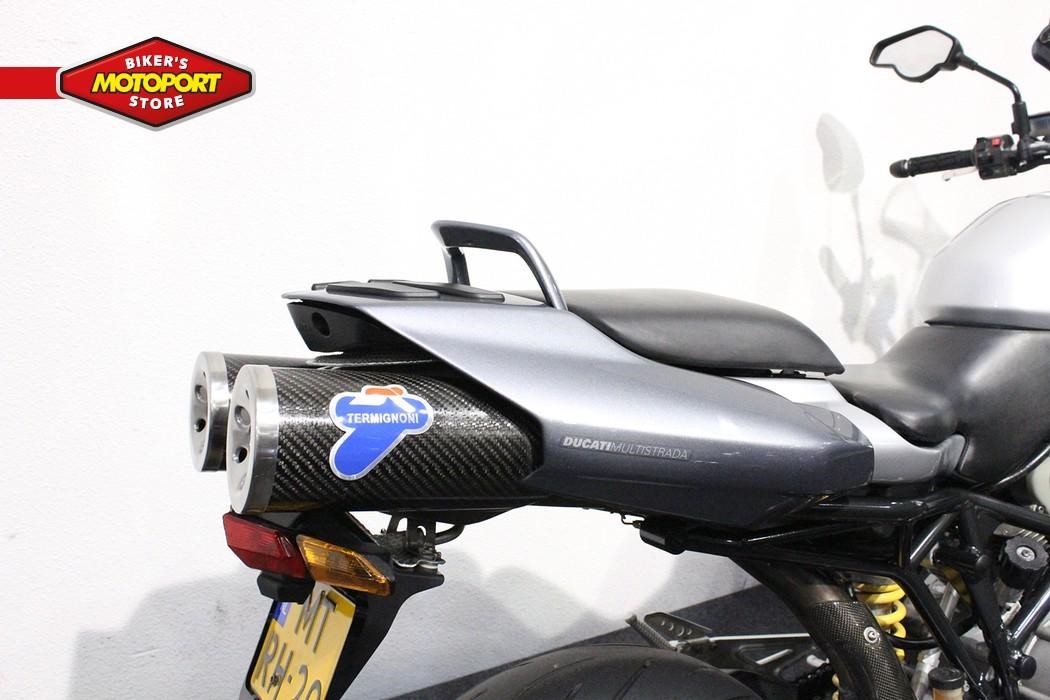 Notitie: Ducati Multistrada 1000 DS Het was voor iedereen toch aardig verrassend toen Ducati eind 2001 met een nieuw studie model naar buiten kwam. Niet alleen omdat het een nieuwe categorie voor de Italianen was, maar - zoals wel vaker gebeurt - het design behoorlijk eigenzinnig was te noemen. Dat deze Ducati een knipoog heeft naar de all road categorie is gelijk duidelijk. De Multistrada heeft een breed stuur en staat hoog op haar poten. Met het brede stuur dicht op het lichaam heb je gelijk het gevoel dat je elke bocht aan kan. De schijfrem van het achterwiel is in het midden van het achterwiel geplaatst aangezien de Multistrada is uitgerust met een enkelzijdige swingarm. Daarbij ook nog een geweldige geluidsbeleving, doormiddel van een schitterende Termignoni Performance demperset. MotoPort Leek nu al meer dan 30 jaar de grootste, mooiste en gezelligste motorzaak van het noorden... Officieel dealer van : Aprilia, Kawasaki, Indian, Moto-Guzzi, Piaggio, Suzuki, Vespa en Yamaha. Tevens een grote voorraad goed onderhouden Occasions. Bij ons ga je zeker slagen. Betaling in termijnen mogelijk (toetsing en registratie BKR te Tiel). Al onze motoren gaan de weg op inclusief garantie, volle tank en afleveringscontrole beurt. Geadverteerde prijs is inclusief onvermijdbare kosten. U kunt altijd bij ons binnen stappen voor een vrijblijvende proefrit, ook de koffie staat altijd voor u klaar. Voordelig en goed verzekeren? Kijk op www.motoportleek.nl voor meer informatie over een voordelige verzekering voor jouw motor. En klik makkelijk je eigen offerte bij elkaar. (ook als je niet je motor bij ons hebt gekocht) Wat te denken van een kledingshop van meer dan 900 vierkante meter! Een ruime sortering kleding, van sportief leer tot functionele textielkleding en we hebben altijd meer dan 750 helmen op voorraad. Verder beschikken we over een zeer goed uitgeruste werkplaats, inclusief een eigen schadeafdeling. Snel service voor de motorbanden, klaar terwijl je wacht. Ook voor de verhuur van motoren kun je bij ons terecht. Kijk voor de voorwaarden op de verhuursite.