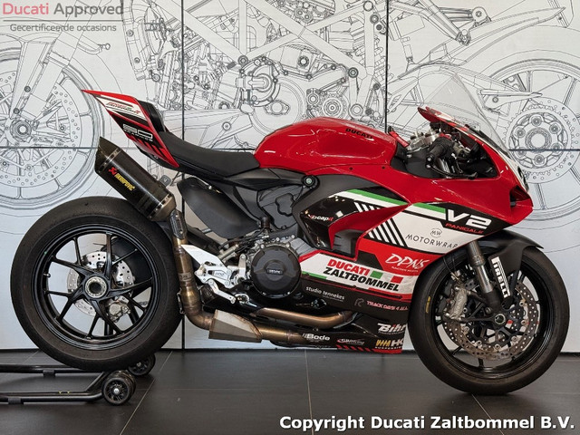 Panigale V2 Ready2Race. Op basis van een nieuwe Panigale V2 voorzien van raceplaatwerk, aangepaste vering, DPNS remschakelset, special (Low Noise) uitlaat systeem, crashprotectie, Pirelli slicks, bandenwarmers, Paddock stand en professioneel gespoten in het Ready2Race Design
