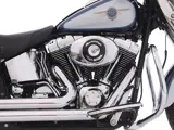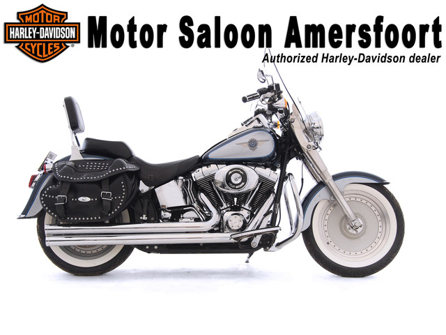Gave Harley-Davidson FLSTF Softail Fat Boy. Geleverd in de originele two-tone kleurstelling Luxury Blue Ice. De Vance & Hines long shots zorgen voor het kenmerkende Harley-Davidson geluid. Het afneembare windscherm kan extra comfort leveren maar is zonder gereedschap er ook snel vanaf te halen als dat wenselijk is.