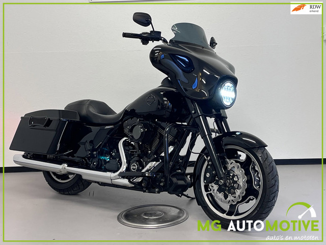 Dikke all black Street Glide met wrap front fender, ape , radio/cd / valbeugels, hoge donkere ruit, led koplamp, led knipperlichten, enz