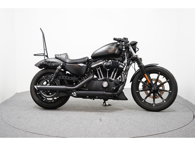 Een in zeer mooie staat verkerende Harley-Davidson Sportster XL883N Iron met een verbreed stuur, Vance&Hines sportuilaten ( LETOP: zonder E-keurmerk ), Le Pera zadel, Teller montage aan zijkant en aan de zijkant gemonteerde kentekenplaathouder.