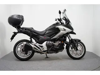 Een in zeer nette staat verkerende Honda NC 750 X DCT ABS met Valbeugels, Mistlampen, Topkoffer, Bandenspanningsmeter, Verhoogd windscherm en een Bagster comfort buddy voor en achter.