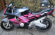 Prachtige zwart met roze Honda CBR 600 F uit 1993 die net een onderhoudsbeurt heeft gehad met ondermeer nieuwe remblokken. De voorband is nog vrijwel nieuw en op de achterband zit meerdere millimeters profiel. Het is altijd starten en wegrijden. De motor wordt met een volle tank benzine afgeleverd dus je kan er zo mee weg!