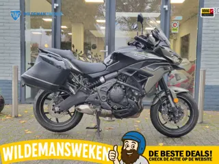 Fraaie Versys 650 Tourer uitvoering. De Tourer heeft als extra t.o.v. de standaard Versys: zijkoffers met binnentassen, handkappen en tankpad. Mooie complete Versys.