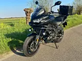 Voorzien van diverse extra’s, waaronder een valbeugel, topkoffer en LED-verstralers.