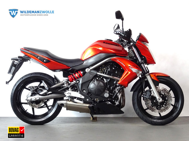 Keurige ER6N van 2009. Wij hebben deze motor recent verkocht, voorzien van nieuwe set banden, nieuwe kettingkit en onderhoudsbeurt. Tevens hebben wij de motor op de vering verlaagd. Dit is relatief gemakkelijk weer naar originele hoogte te krijgen.