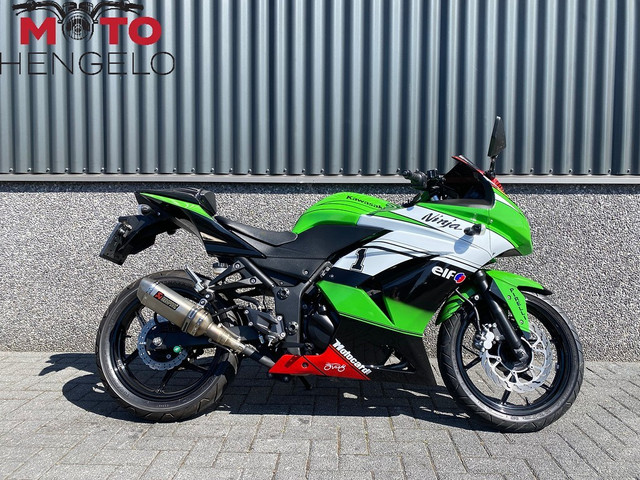 Blitse Ninja 250 voor het A2 rijbewijs voorzien van after market kappenset, duoseat cover en aftermarket uitlaat (is geen echte Akrapovic).
