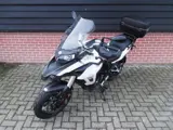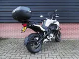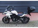 Stoere off road Benelli TRK 502 A2 motor met topkoffer 48PK van 10-2020 met 26.838 km in frisse witte kleur. Compleet boekjes, nieuwe voor- en achterband december 2025, remvloeistof en achterremblokjes vervangen, een mooie goed rijdende motor, USB aansluiting, valbeugel, handvatverwarming, ABS.