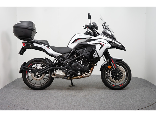 Bijna nieuwe Benelli TRK 502 X ABS voorzien van Topkoffer, Valbeugels en Stuurverhogers. Deze Benlli staat rijklaar op nieuwe Pirelli Angel GT banden.