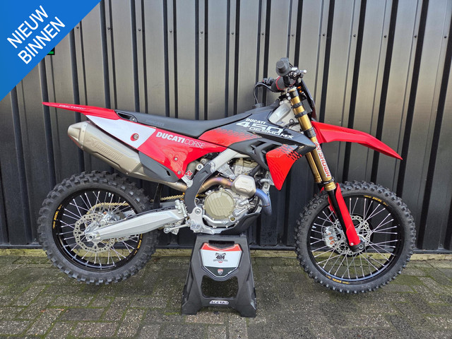 De Desmo 450 MX is de allereerste crossmotor van Ducati met desmodromische kleptiming. Ontwikkeld op de crossbaan en doordrenkt met het race-DNA van Borgo Panigale, is deze machine gebouwd voor snelheid, controle en pure adrenaline. Lichtgewicht, krachtig en technisch geavanceerd.