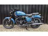 DE nieuwe Royal Enfield Shotgun 650 in de kleur Plasma Blue. Dit betreft een unieke door Custom geinspireerde motorfiets die leverbaar is in meerder kleuren.