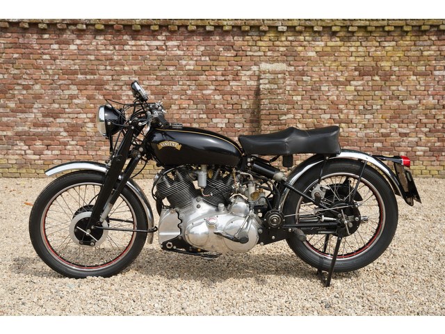 De Vincent Rapide C-Series uit 1951 is een absolute legende in de wereld van klassieke motorfietsen. Bekend om zijn compromisloze prestaties en vooruitstrevende ontwerp, was de Rapide in zijn tijd de snelste wegmotor die je kon kopen. Dit specifieke exemplaar vertegenwoordigt de gouden jaren van naoorlogse innovatie en is niet alleen een waar genot om naar te kijken maar ook een indrukwekkend stuk techniek om te bezitten. Met zijn 998cc V-twin motor en aerodynamische vormgeving, is deze Rapide de ultieme toevoeging voor elke mancave of klassieke motorverzameling. Deze Vincent verkeert in gerestaureerde en gereviseerde staat en is klaar voor gebruik. Een schitterende motorfiets.